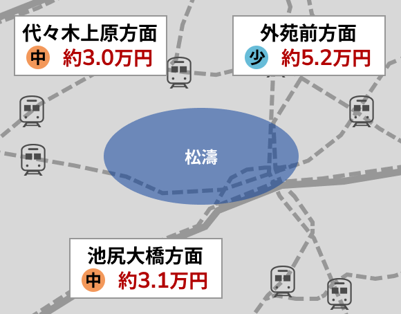 松濤エリア周辺は、外苑前方面、池尻大橋方面、代々木上原方面の3つのエリアに分けることができます。