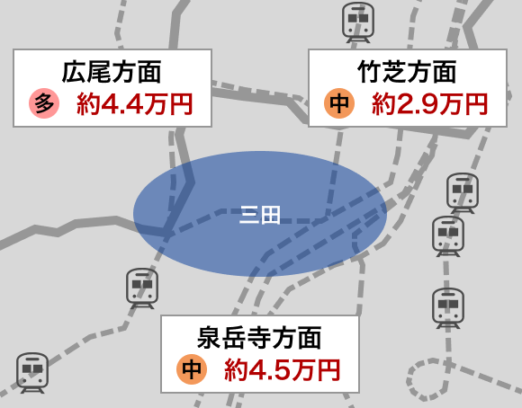 三田周辺には20件の月極駐車場があり、相場価格は67,100円です。最高賃料は69,300円、最低賃料は0円です。