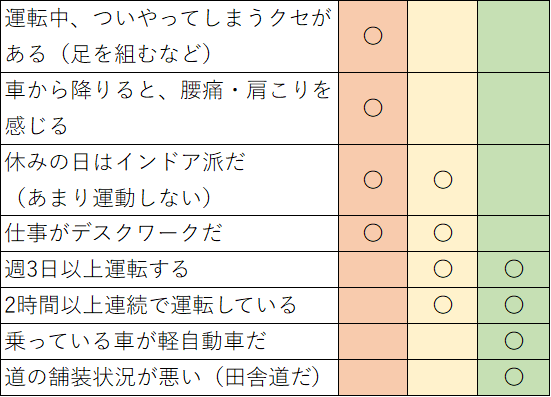 一口に運転の疲れと言っても、原因が違えば対策も違います。