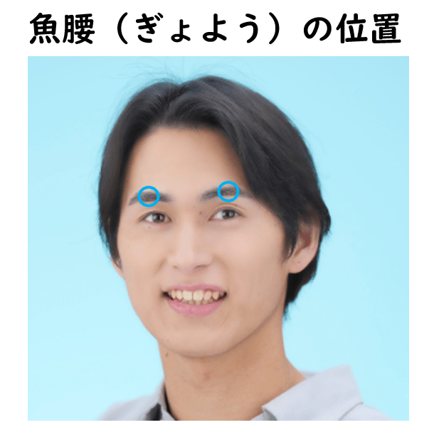 「魚腰(ぎょよう)」も、目の疲労回復に役立つツボです。