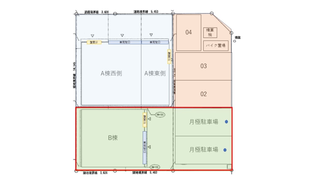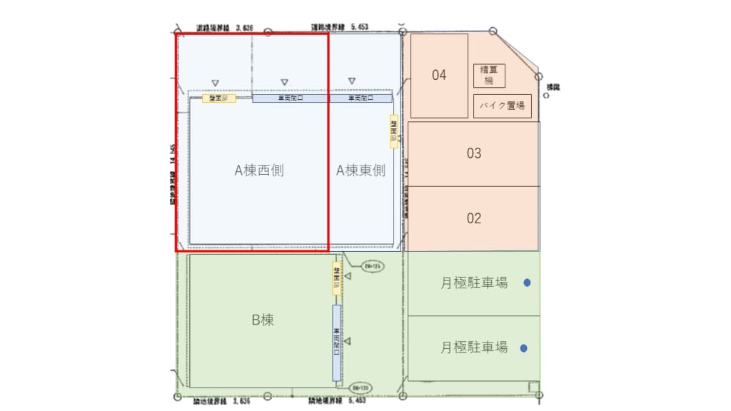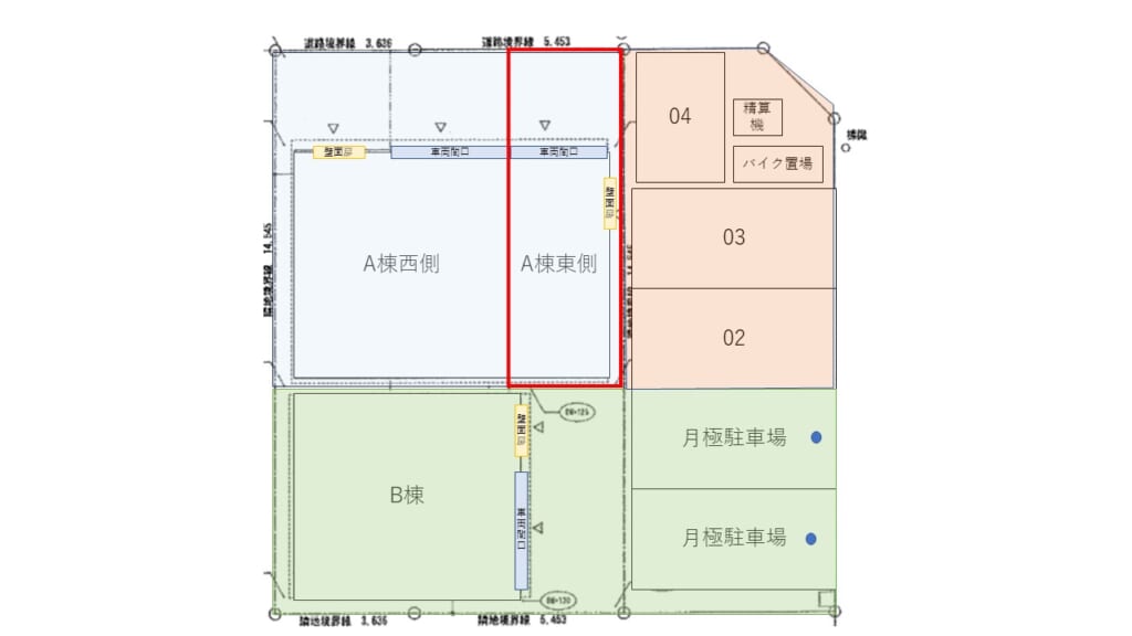 - 【コンテナボックス(A棟東側)/自動車】 全長8,350mm・全幅2,600mm・全高2,900mm